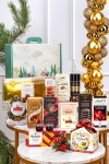 W skład zestawu wchodzą wyłącznie produkty wymienione w opisie. Kieliszki, bombki, dekoracje oraz talerze widoczne na zdjęciach służą wyłącznie jako element aranżacji i nie są częścią prezentu.