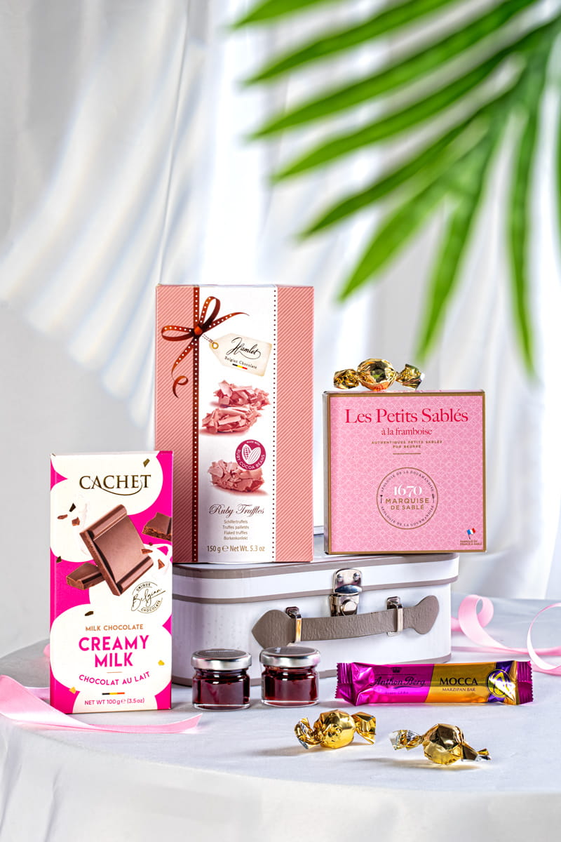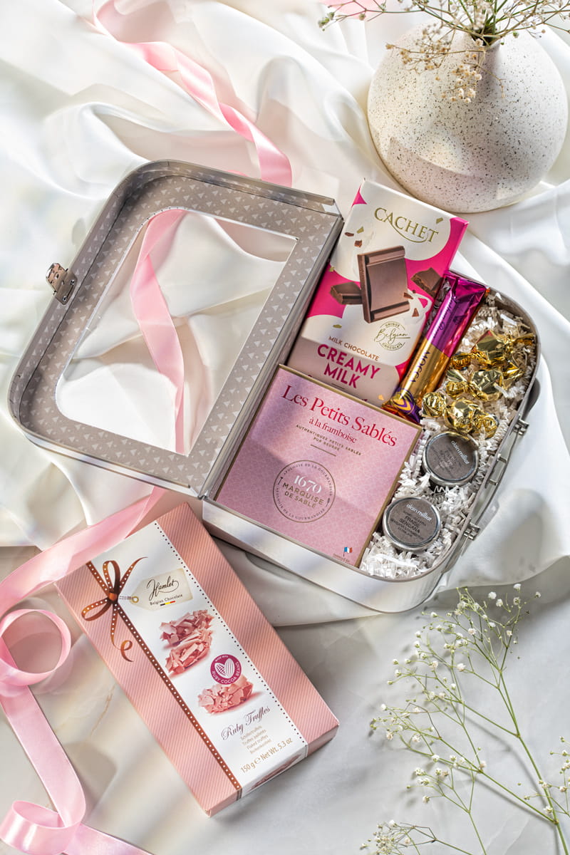 Poznaj kosz prezentowy dla miłośników małych przyjemności – wybór, który rozpromieni każdy dzień, niezależnie od okazji. W eleganckim pudełku w formie walizki z okienkiem znajdziesz dobrane łakocie, które zaspokoją Twoje najsubtelniejsze gusta.