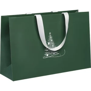 Elegancka i pojemna papierowa torba WINTER ELEGANCE w świątecznej, zielono-białej stylistyce to doskonały wybór do pakowania większych prezentów, zestawów upominkowych oraz produktów premium. Jej klasyczny, a zarazem nowoczesny design świetnie wpisuje się w sezon bożonarodzeniowy – zarówno w sprzedaży detalicznej, jak i firmowej.