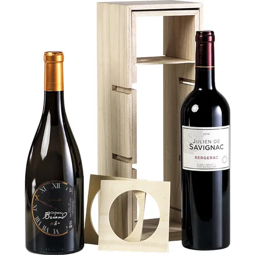Elegancka i funkcjonalna drewniana skrzynka na wino wykonana z naturalnego drewna bukszpanowego to doskonały wybór zarówno do przechowywania, jak i prezentacji wina. Skrzynka pomieści 1 butelkę w formacie Burgundia / Bourgogne / Szampan, a po rozłożeniu może pełnić funkcję stojaka na 5 butelek – praktyczne i stylowe rozwiązanie dla miłośników wina oraz sklepów z alkoholami premium.