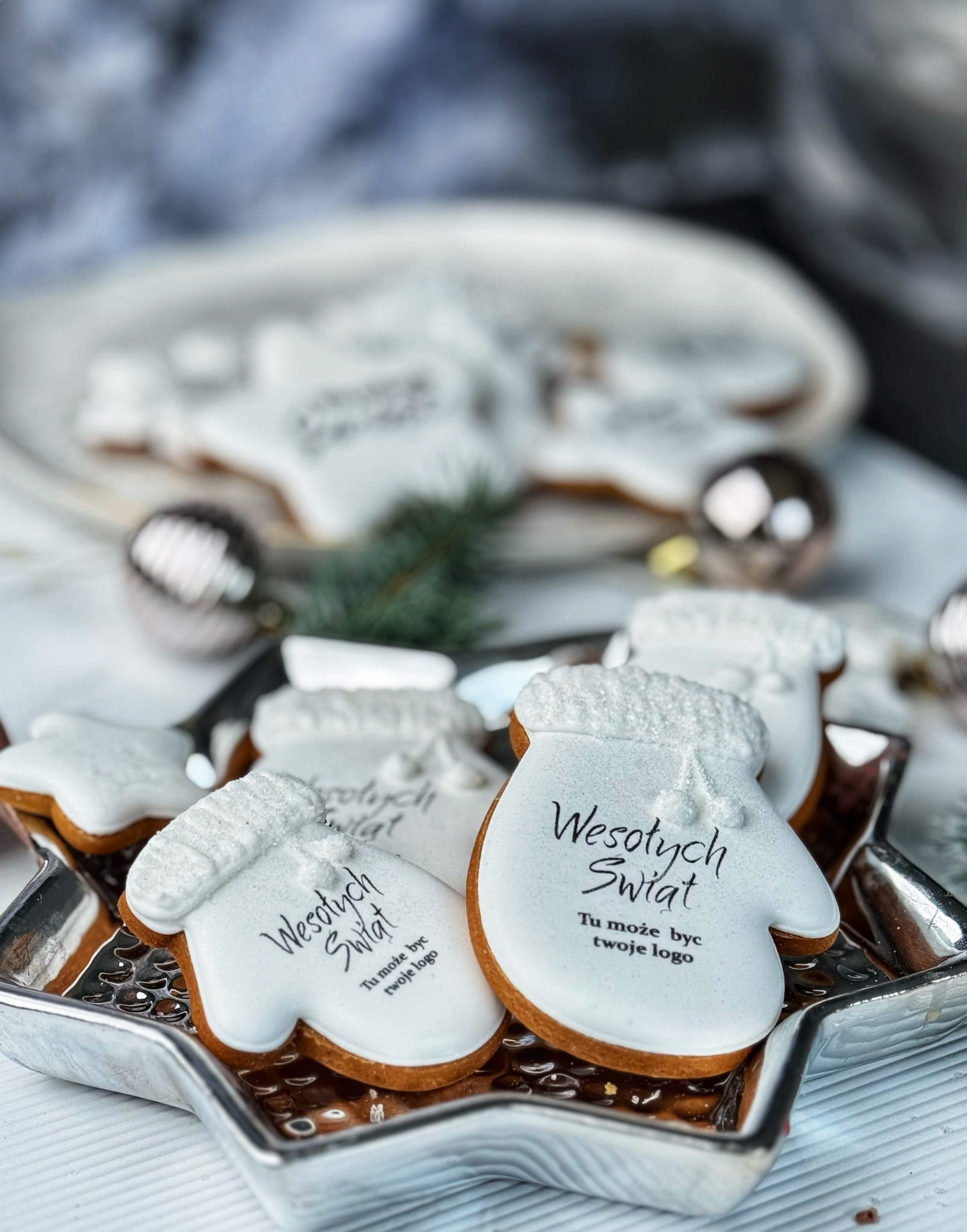 Świąteczny pierniczek z lukrem (z możliwością nadruku logo) – tradycyjny, aromatyczny wypiek bożonarodzeniowy, pachnący korzennymi przyprawami i ręcznie zdobiony lukrem.