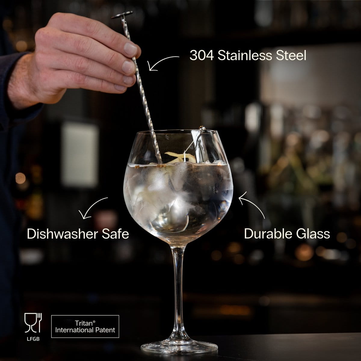 Oszczędzaj - Unikaj drogich koktajli w branży gastronomicznej i podawaj je w domu jak profesjonalny barman Będziesz się nimi cieszyć przez wiele lat - Akcesoria barowe i szklanki można myć w zmywarce, a wykonane są z wysokiej jakości stali nierdzewnej i szkła kryształowego Tritan®